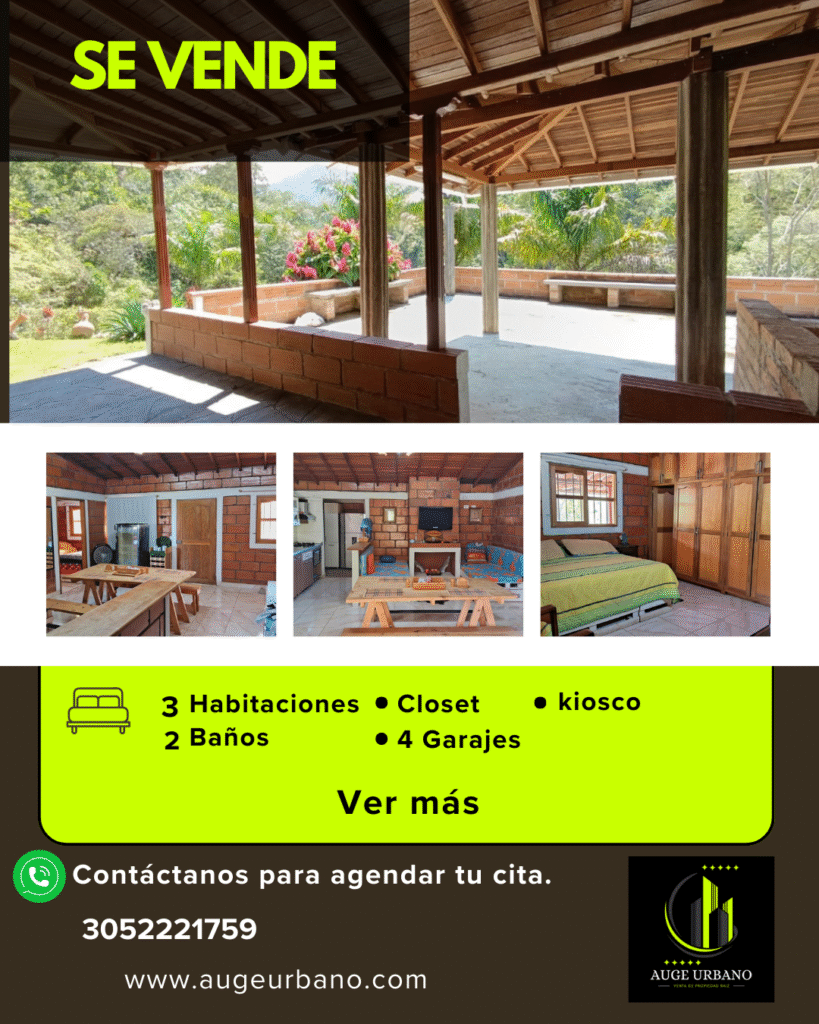 VENDO FINCA AMOBLADA EN BARBOSA (Antioquia) ¡Oportunidad única cerca a Medellín y Bello! Se vende hermosa finca en la Vereda Dos Quebradas (vía antigua a Cisneros). Disfruta del mejor clima templado y la tranquilidad del campo con todas las comodidades de la ciudad a la mano. 🏡 Características: Lote: 2.200 m² | Casa: 200 m² (Construcción tradicional). 3 Habitaciones amplias + 2 Baños. Sala con chimenea, comedor y cocina abierta. Kiosco con asadero y amplias zonas verdes. Terraza con posibilidad de ampliación. Parqueadero para 4 carros. 📍 Ubicación: Cerca al “Charco del Brujo”, zona segura, turística y de fácil acceso.